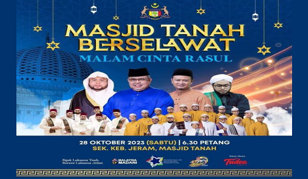 MELAKA, 26 Oktober– Lebih 5,000 umat Islam dijangka berkumpul bagi Program Masjid Tanah Berselawat Malam Cinta Rasul di Dataran Sekolah Kebangsaan (SK) Jeram, Sabtu ini.