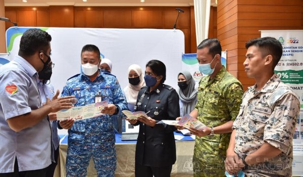 (Anggota keselamatan negara yang hadir pada majlis berkenaan diberikan pencerahan berhubung caruman yang disediakan PERKESO/Foto FB KSM)