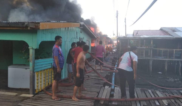 KUDAT, 16 Februari – Sekurang-kurang 50 buah rumah setinggan atas air musnah dalam kebakaran di Kampung Landung Ayang, petang tadi.