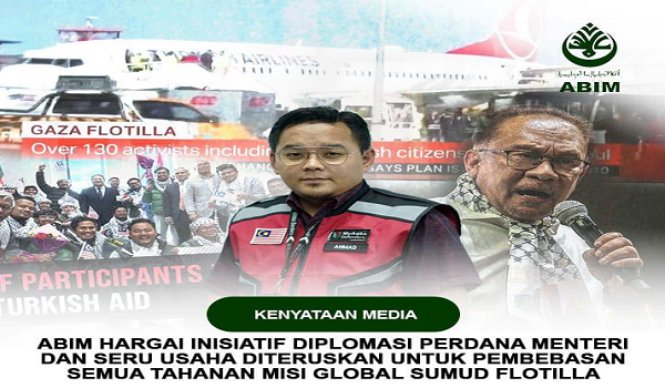 KUALA LUMPUR, 5 Oktober – Angkatan Belia Islam Malaysia (ABIM) menzahirkan setinggi-tinggi kesyukuran atas keselamatan dan kepulangan 23 sukarelawan Malaysia yang menyertai misi Global Sumud Flotilla ke Gaza, yang dilaporkan selamat tiba di Istanbul, Türkiye, malam tadi.