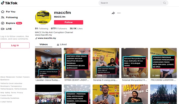 PUTRAJAYA, 5 Julai- Suruhanjaya Pencegahan Rasuah Malaysia (SPRM) kini memiliki akaun Tik Tok sendiri bagi menyampaikan maklumat seiring perkembangan zaman dan teknologi terkini.