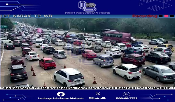 Pergerakan trafik turut dilaporkan perlahan di Lebuhraya Pantai Timur 1 menuju ke Lembah Klang.