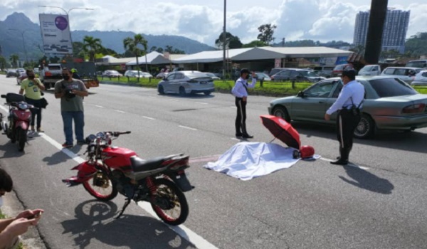 Sejurus tiba di lokasi kejadian, mangsa terbabas dan jatuh sebelum dirempuh sebuah kenderaan yang gagal mengelak.