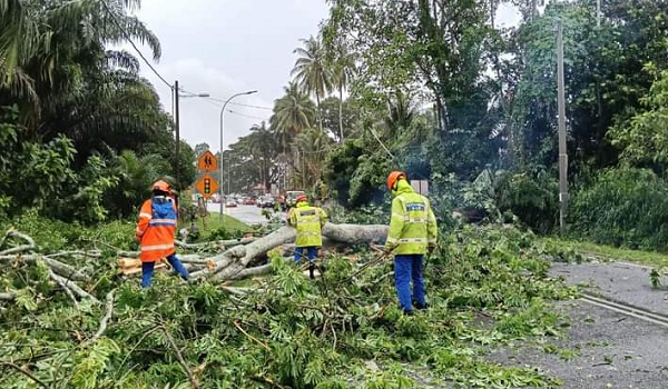BALING, 5 September – Hujan lebat beserta angin kencang yang berlaku petang tadi menyebabkan beberapa kejadian pokok tumbang di Daerah Baling dan Sik.