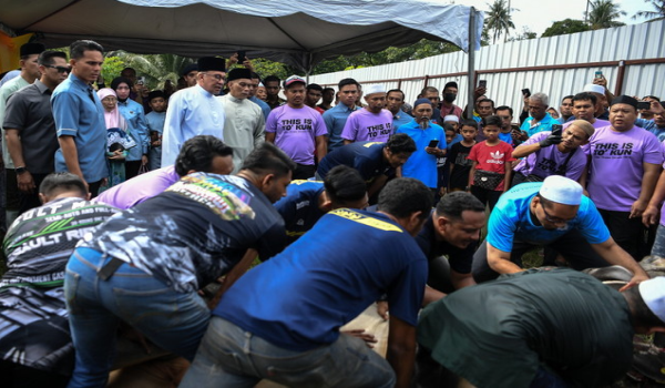 Datuk Seri Anwar turut menyaksikan ahli kariah masjid melakukan ibadah korban dan meninjau operasi melapah dan menimbang daging bagi diagihkan kepada penduduk setempat.