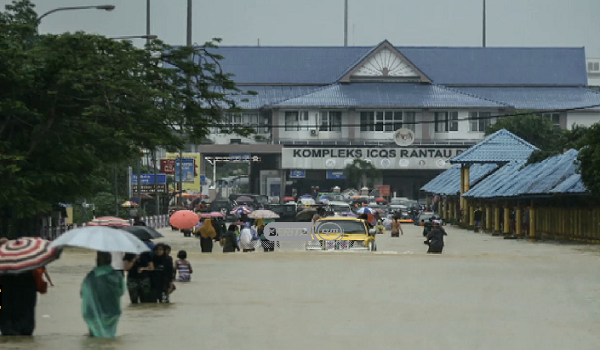 Menurut kenyataan Jabatan Pengairan dan Saliran (JAS), di Terengganu banjir dijangka bermula pukul 2.00 petang.