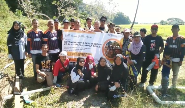 KUALA PERLIS, 3 Februari- Lebih 100 peserta terdiri pelajar Kolej Vokasional Kangar dan penduduk Kampung Bukit Papan dan Kampung Telok mencurah keringat bergotong-royong membersihkan Tanah Perkuburan Islam Bukit Papan.
