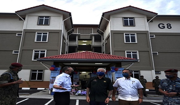 (Datuk Seri Hishammuddin dan Datuk Seri Ismail Sabri ketika hadir merasmikan Rumah Keluarga Malaysia Angkatan Tentera di Kem Segamat/BERNAMA)