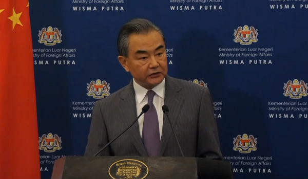(Wang Yi pada sidang media bersama rakan sejawatnya dari Malaysia Datuk Seri Saifuddin Abdullah