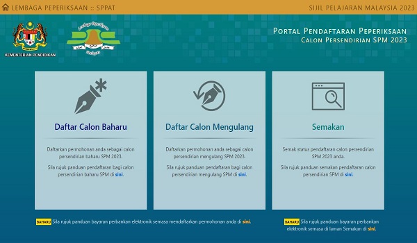“Maklumat lanjut berkaitan pendaftaran peperiksaan SPM Tahun 2023 bagi calon persendirian boleh diperoleh daripada laman sesawang Lembaga Peperiksaan di pautan lp.moe.gov.my.”, menurut kenyataan itu.