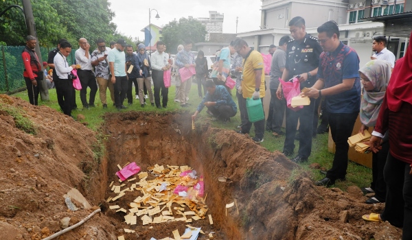 Kerja-kerja pelupusan tersebut dijalankan melalui kaedah pembakaran bagi memastikan dokumen-dokumen berkenaan dimusnahkan dengan sempurna.