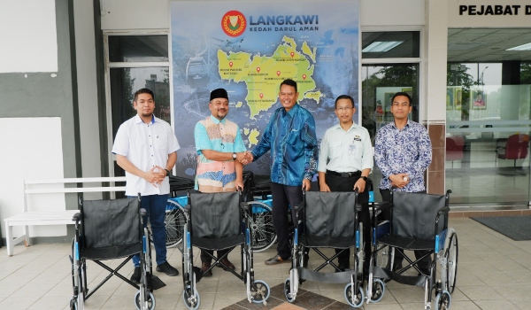 (Kerusi roda diserahkan kepada Pejabat Kesihatan Langkawi/FOTO Pejabat Daerah)