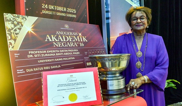 SUBANG JAYA, 24 Oktober – Pakar arkeologi, Prof Emeritus Datin Dr Siti Zuraina Abdul Majid dinobatkan sebagai Tokoh Akademik Negara 2025 pada Majlis Anugerah Akademik Negara (AAN) ke-16.