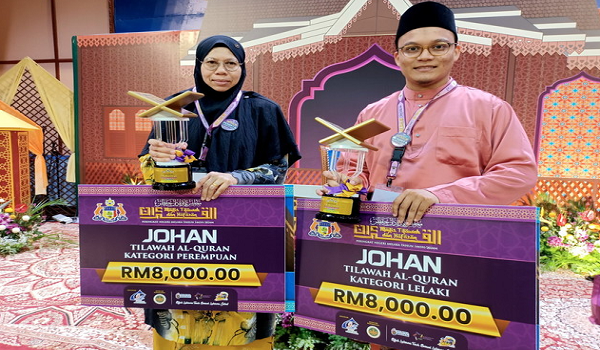 MELAKA, 11 Mei – Dua guru al-Quran Muhammad Khairi Maidin, 25, dan Normawaty Sahat, 51 dinobatkan sebagai johan qari dan qariah pada Majlis Tilawah dan Hafazan Al Quran 2024 Peringkat negeri Melaka yang berlangsung Masjid Al Azim di sini, malam tadi.