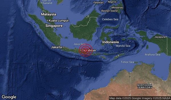 Jabatan Meteorologi Malaysia (MET Malaysia) dalam kenyataan memaklumkan, gempa dengan kedalaman 10 kilometer (km) itu berlaku pada jarak 128 km timur laut dari Probolinggo, Indonesia.