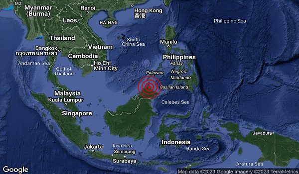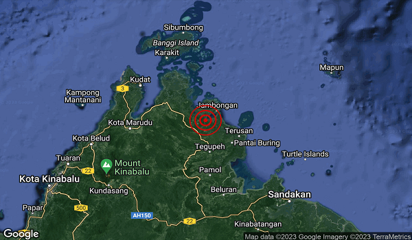Jabatan Meteorologi Malaysia dalam kenyataan memaklumkan gempa berpusat 6.6 darjah Utara 117.4 darjah Timur pada kedalaman 10 kilometer.