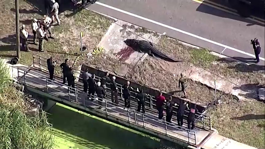 Pejabat Syerif Daerah Pinellas dalam kenyataan memaklumkan pihak Suruhanjaya Pemuliharaan Ikan dan Hidupan Liar Florida (FWC) membunuh aligator jantan sepanjang 4.17 meter itu secara manusiawi. -Reuters