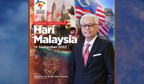 Perdana Menteri, Datuk Seri Ismail Sabri Yaakob dalam ucapan ringkas sempena Hari Malaysia hari ini mendoakan semoga Keluarga Malaysia terus menjunjung semangat integrasi nasional, kesetiaan kepada raja dan negara serta Malaysia terus dipelihara dalam keamanan dan kemakmuran.