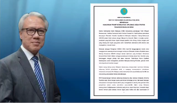 KUALA LUMPUR, 1 Oktober – Institut Kefahaman Islam Malaysia (IKIM) menyokong pandangan Mufti Wilayah Persekutuan, Sahibus Samahah Ustaz Ahmad Fauwaz Fadzil bahawa penolakan terhadap kunjungan Presiden Amerika Syarikat, Donald Trump ke Malaysia bersempena Sidang Kemuncak ASEAN adalah tidak selaras dengan Maqasid al-Syariah.