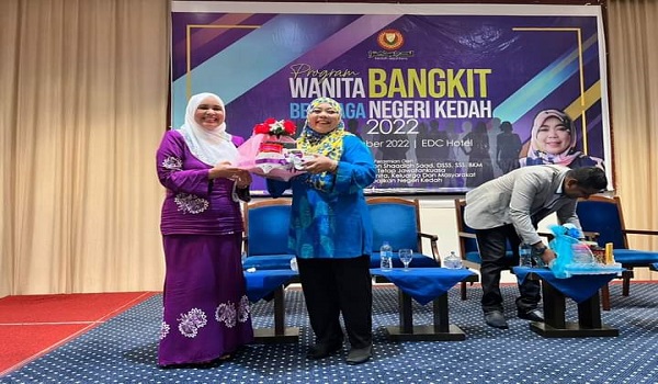 (Pengerusi Jawatankuasa Pembangunan Wanita, Keluarga, Masyarakat dan Kebajikan Negeri Kedah, Datuk Halimaton Shaadiah Saad (kanan)