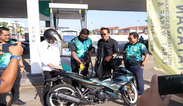 BANGI, 1 Mac -Kira-kira 200 orang penunggang motosikal menerima manfaat isi minyak percuma anjuran Yayasan Kolej Islam Selangor (KUIS) di stesen Petronas Bandar Seri Putra di sini.