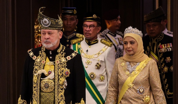 KUALA LUMPUR, 20 Julai- Yang di-Pertuan Agong Sultan Ibrahim dan Raja Permaisuri Agong Raja Zarith Sofiah berangkat masuk ke Balairung Seri, Istana Negara bagi meneruskan Istiadat Pertabalan Yang di-Pertuan Agong ke-17.