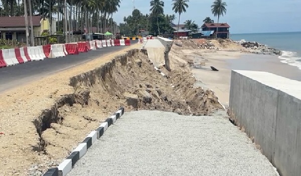 “Kami terkejut sebab jalan ini baru siap lebih kurang sebulan lalu, tapi sudah runtuh lagi akibat hakisan (pantai). Jalan ini dekat sangat dengan kampung, jadi harap tindakan segera diambil,” katanya.