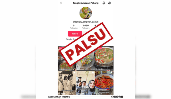 KUANTAN, 24 Julai – Orang ramai diminta tidak terperdaya dengan kewujudan akaun TikTok palsu yang menggunakan nama Tengku Ampuan Pahang, Tunku Azizah Aminah Maimunah Iskandariah.