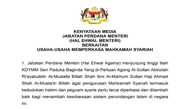 “Perkara itu termasuk kedudukan hakim dan peguam syarie perlu terus diperkasa dan ditambah baik bagi menambah kewibawaan sistem perundangan Islam di negara ini,” katanya dalam satu kenyataan.