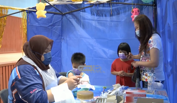 (Ibu bapa menemani anak mereka bagi mendapatkan suntikan Vaksin COVID-19)