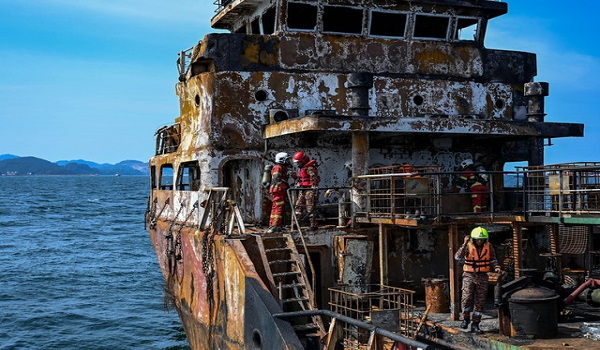 “Memandangkan tiada sesiapa dalam kapal berkenaan, bahayanya kita tidak tahu apa punca kebakaran sama ada melibatkan gas, minyak ‘crude’ ataupun sebagainya.