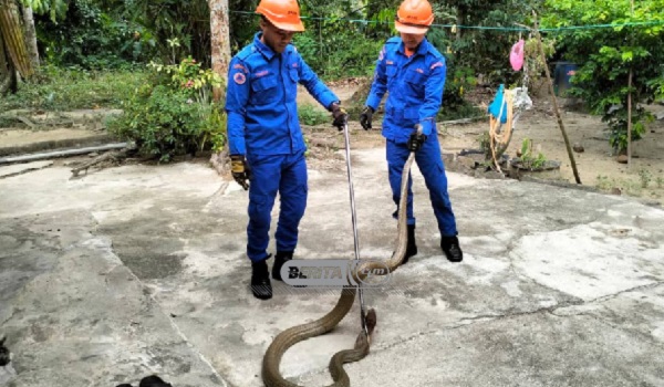 “Reptilia berbisa seberat 20 kilogram ini berjaya ditangkap di dalam sebuah bilik beberapa minit kemudian dengan menggunakan alat khas dan dibawa ke pejabat APM Baling untuk tindakan seterusnya.