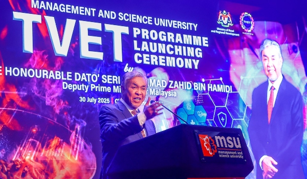 Terdahulu, Ahmad Zahid yang Pengerusi Majlis TVET Negara melancarkan TVET MSU di universiti itu yang turut dihadiri Presiden merangkap Pengasasnya, Profesor Tan Sri Dr Mohd Shukri Ab Yajid hari ini.