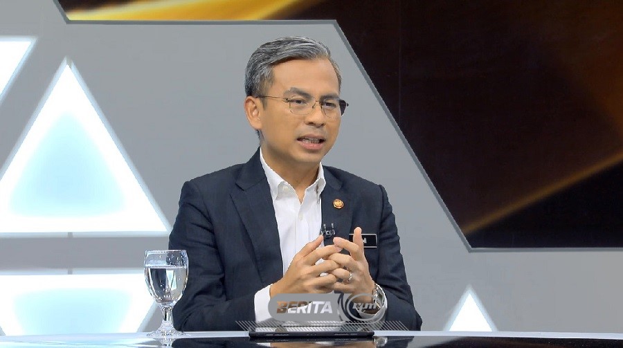(Fahmi Fadzil (kiri) menjadi tetamu Bicara Naratif Khas di Angkasapuri, Kuala Lumpur)
