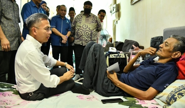 (Menteri KKD Fahmi Fadzil melawat kakitangan RTM, Irwan Budi yang menghidap