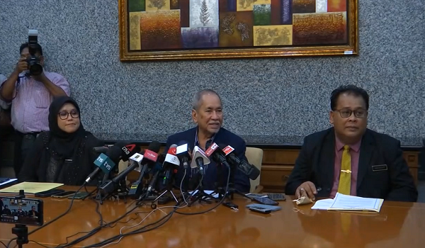 Datuk Seri Dr Wan Junaidi Tuanku Jaafar (tengah), pada sidang media di Putrajaya)