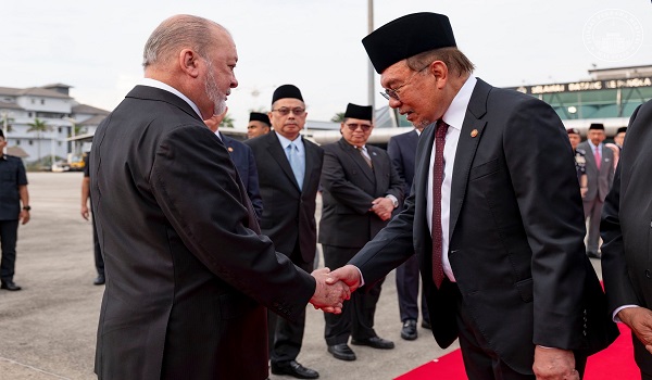 Terdahulu, Anwar mengiringi Sultan Ibrahim ke Istiadat Mengucap Selamat Berangkat Sempena Lawatan Negara, di Pangkalan Udara Tentera Udara Diraja Malaysia (TUDM) Subang.
