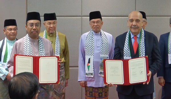 Ia disempurnakan Ketua Setiausaha Kementerian Pelaburan, Perdagangan dan Industri (MITI), Datuk Hairil Yahri Yaacob bagi pihak Malaysia dan Duta Besar Palestin ke Malaysia, Walid Abu Ali sambil