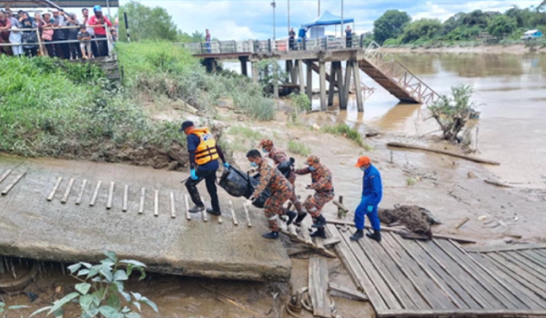 Enam anggota dari Balai Bomba dan Penyelamat Saratok bersama polis tiba di lokasi kira-kira 10 minit kemudian sebelum mengangkat mayat menggunakan bot penyelamat dan membawanya ke jeti berhampiran.