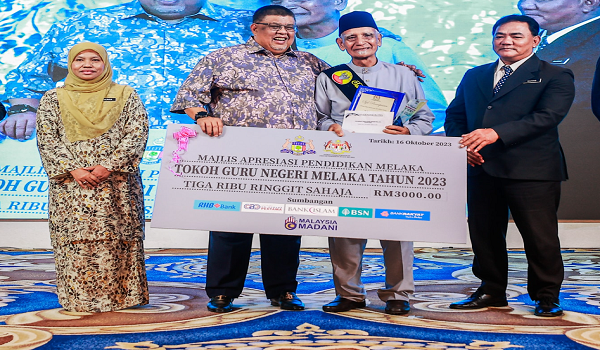 Pada majlis sama Ab Rauf turut menyampaikan Anugerah Tokoh Guru Negeri Melaka bagi 2023 kepada tiga penerima iaitu Talib Abdullah, Mohamad Isa Jolan dan Abu Bakar Sahari.