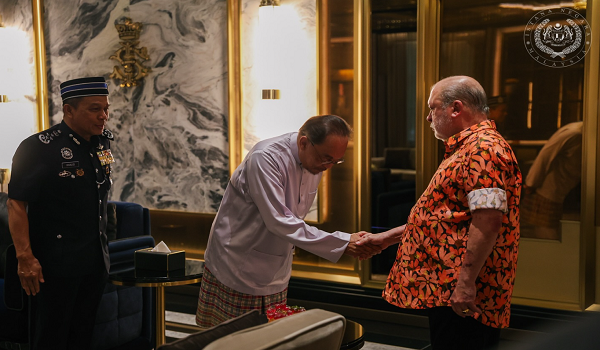 Terdahulu, Seri Paduka Baginda berkenan menerima mengadap Perdana Menteri, Datuk Seri Anwar Ibrahim di Istana Bukit Tunku.