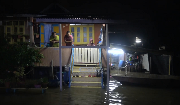 Terdahulu Md Hilman membuat rondaan bagi memantau air pasang besar di Kampung Duyong, Kuala Terengganu.