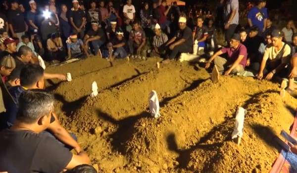 Suasana pilu menyelubungi upacara pengebumian yang dihadiri ratusan ahli keluarga dan penduduk setempat.