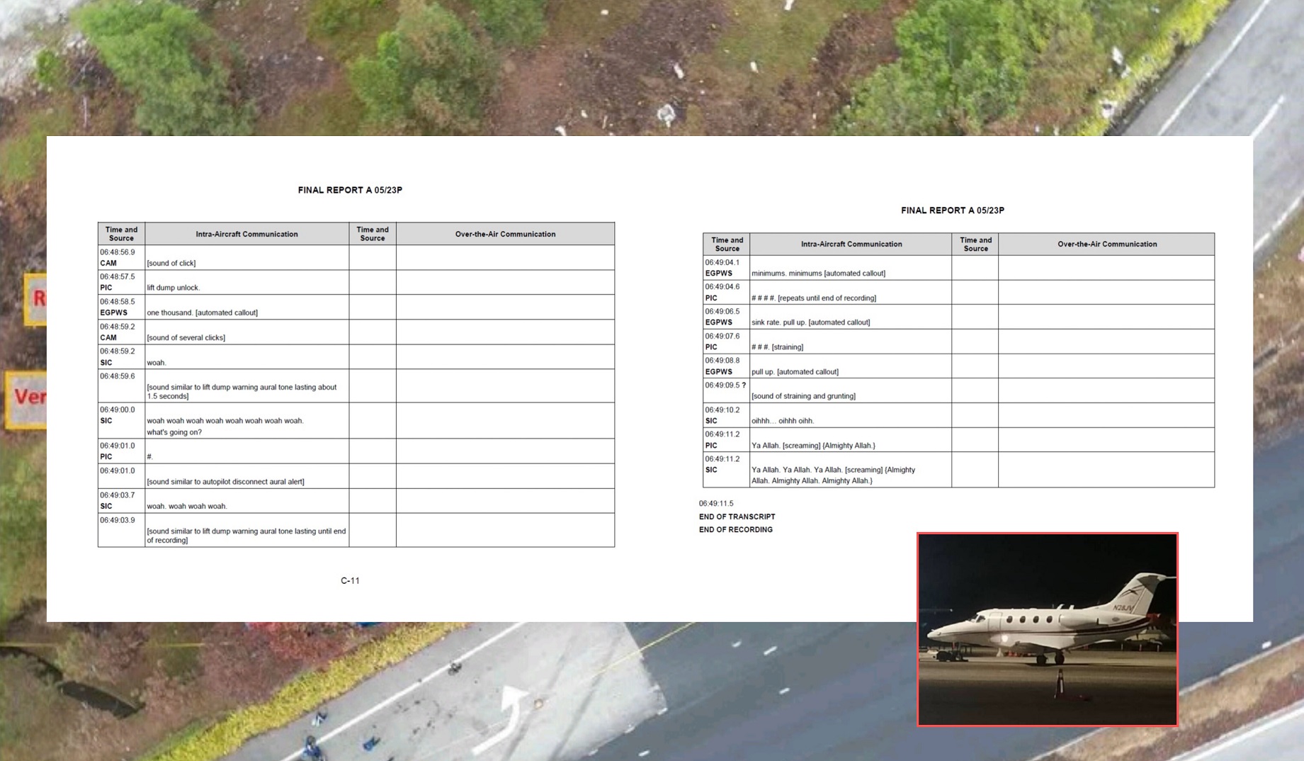Transkrip audio daripada CVR pesawat Beechcraft Model 390 itu tidak dimasukkan dalam laporan awal kemalangan pesawat berkenaan yang dikeluarkan pada 15 September tahun lepas.