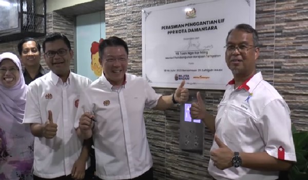 Ketiga, RM550,000 untuk kerja-kerja naik taraf Gerai Selera Impian Jalan Nuri Seksyen 7, Kota Damansara. Sejumlah RM1.45 juta sebagai sentuhan kasih KPKT kepada MBPJ,” kata Kor Ming kepada pemberita selepas merasmikan Projek Penggantian Lif dan sesi ‘walkabout’ di PPR Kota Damansara, di sini.