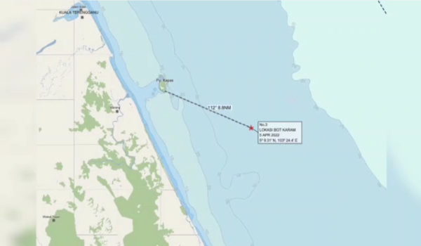 Pencarian diperluas sehingga 96.6 batu nautika persegi meliputi Pulau Kapas, perairan Dungun hingga Paka.