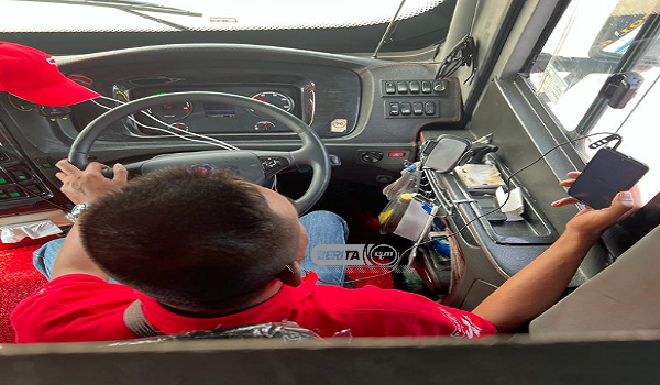 ALOR SETAR, 20 April- Melalui aktiviti penguatkuasaan secara penyamaran yang dilakukan dalam perjalanan bas dari Alor Setar ke Butterworth, seorang pemandu bas telah dikesan melakukan kesalahan menggunakan telefon bimbit tanpa alat bantuan bebas tangan.