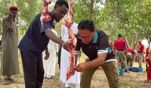 “Pengalaman ini sangat menarik. Ini merupakan kali ketiga saya menyambut Hari Raya Korban di sini dan ia tetap istimewa kepada saya kerana kali ini pasukan tentera turut sama menyertai proses menyembelih dan pengagihan,” katanya.