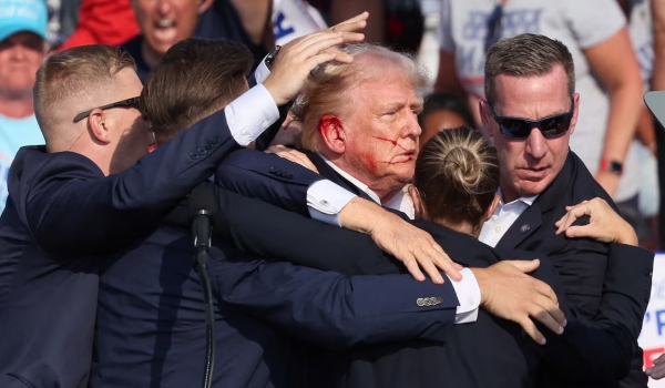 Selepas tembakan, Trump dilihat memegang telinga kanan, kemudian menurunkan tangannya ke bawah, sebelum melutut untuk berlindung di belakang podium.