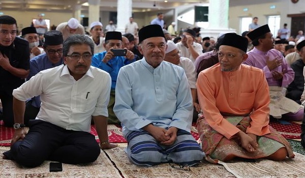 (Perdana Menteri, Datuk Seri Anwar Ibrahim (dua, kiri) hadir ke Masjid Jamek Kampung Baru